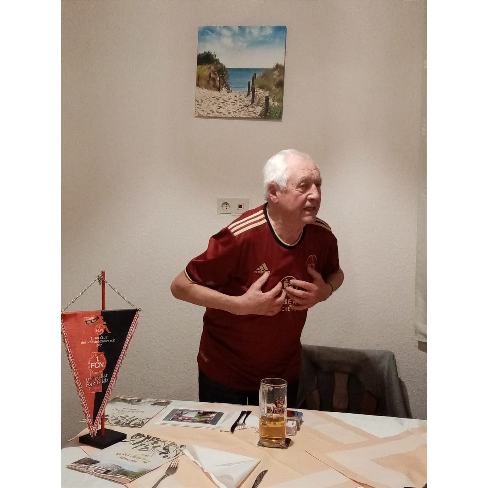 Als Gastgeschenk überreichte uns Giri eine Collage vom Tag, an dem die Inklusionsmannschaft des 1. FC Nürnberg am Valznerweiher Bayerischer Inklusionsmeister wurde. Ein unvergesslicher Tag für alle Beteiligten. Giri und Team: Vielen Dank, dass ihr heute bei uns gewesen seid. Wir wünschen Euch sportlich und persönlich viel Erfolg für die Zukunft.